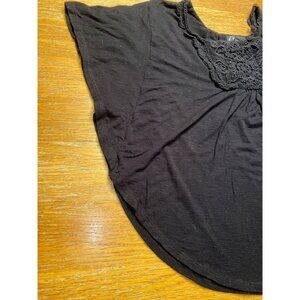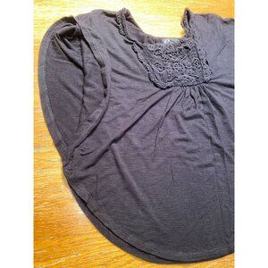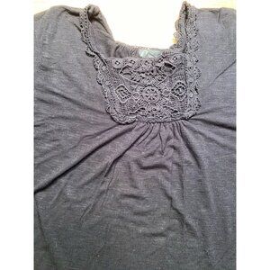 This top features a delicate lace crochet design at the neckline, adding a boho touch to any outfit. Batwing sleeves offer a relaxed fit.