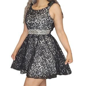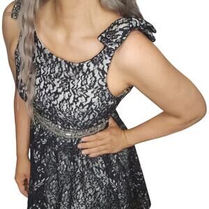 Black Lace Dress Juniors 5 Sequin Sparkly Fit Flare Bowtie Tulle Prom Mini Shiny