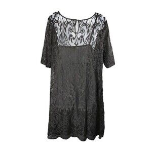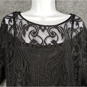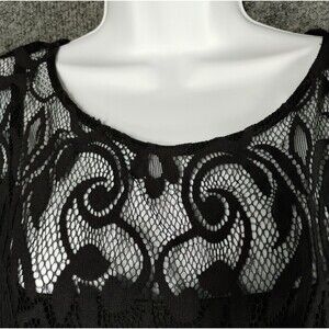 Black Lace Dress XL Knee Length Lined Witchy Goth Dark Renaissance Knee Length