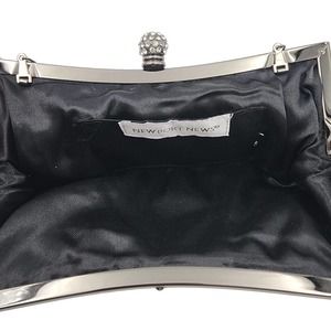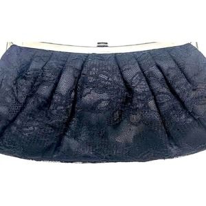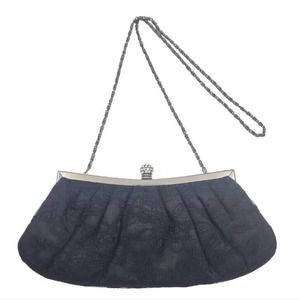 Black Lace Evening Clutch Purse Shoulder Bag Rhinestone Closure Chain Strap.