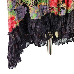 Black Lace Eyelet Flowy Wildflower Sleeveless Top Button Loop Close Women S/M