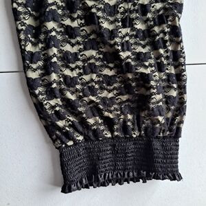 This beautiful blouse has lace fabric but the cream colored fabric underneath makes this top not see through.