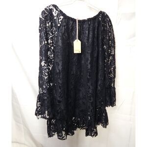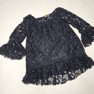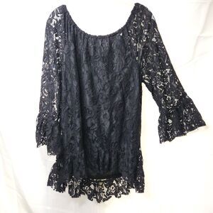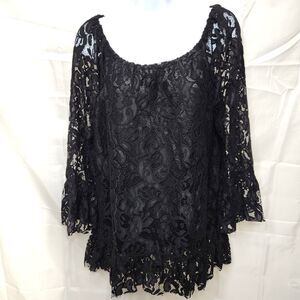 Black Lace Jodifl Woman's Peasant Top Sz. L Bell 3/4 Sleeves Gothic Witchy NWT