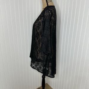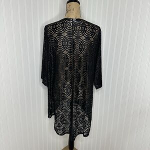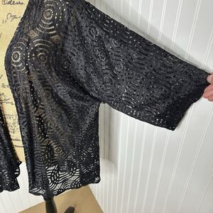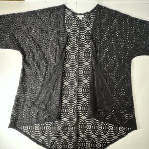 Black Lace Kimono Cardigan LuLaRoe Sz M Open Front Sheer Cover Up Boho Festival