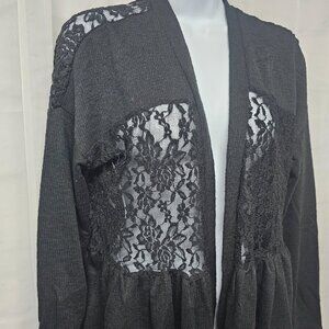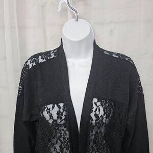 Black Lace Knit Cardigan Twee Coquette Whimsigoth Ribbed Sheer Y2K L