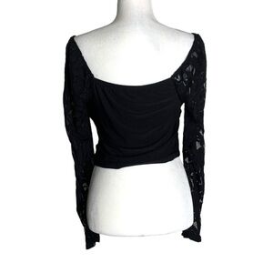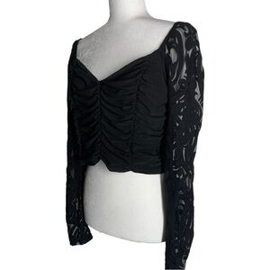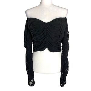 Black Lace Long sleeves Ruched Crop Top Off Shoulder