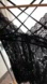 This is a small black lace negligée that has served its purpose and must go. It has a ribbon bow in the front breast area of the garment.