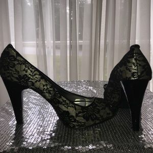 Pre-loved and only worn ONCE to a wedding. These are "Rampage" brand. They are black lace over a light cream color peep-toe heel with a 4.5" heel height in size 10. There are no noticeable flaws on the heels and no tears in any of the gorgeous lace. These can be worn dressed up or casually. Perfect for parties/events, work, going out with the girls, or just date night. Feel free to make an offer. Pictures don't do any justice! Happy Poshing! 😍❤️😊✨