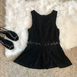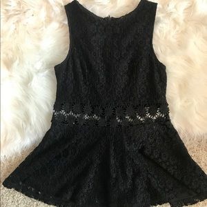 A sweet and flirty Peplum too that you can dress up or down this summer! Black and full lace with a peek-a-boo waist line. Gently worn. I love this top but no longer fits me around the chest. She has plenty of life left and needs a new home. Size small. True to size.