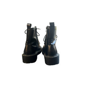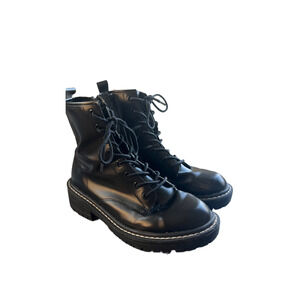 Step up your style game with these edgy Black Laced Platform Boots in size 8. Featuring delicate yet daring lace details, these boots combine a playful charm with a bold statement. The chunky platform elevates your look—literally—adding height and confidence to every step. Perfect for nights out, festivals, or whenever you feel like turning heads, these boots bring a fun, rebellious edge to any outfit. Let your footwear do the talking and show off your unique, fearless spirit.