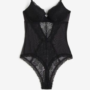 Black Lace Push-Up Thong Bodysuit H&M women's size 34A