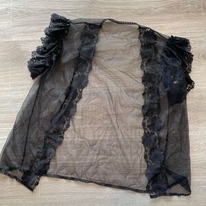 Black Lace Ruffle Floral Sheer Cardigan Women's Small Fairy Goth Regency READ