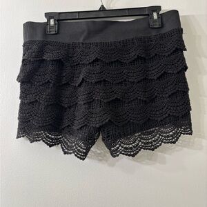 Stylish black lace shorts with ruffle design. Lined, elastic waistband, and very comfortable.