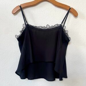 BCBG Lace Trimmed Cropped Camisole Black XS, NWOT New Lace ruffle