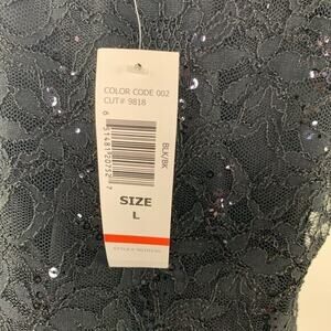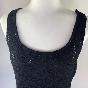 Black Lace Sequin Sleeveless Party Top Tank Womens Size Large Formal Glam Chic