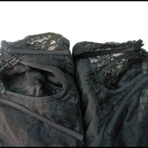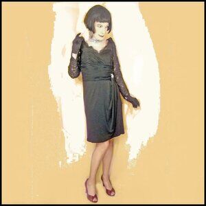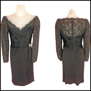 Black Lace Sheath, Long Sleeve Dress, 50s Style with Rhinestone Brooch - 90s