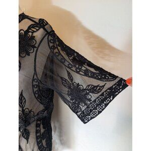 Black Lace Sheer Floral Kimono Cardigan L-XL Whimsigoth Witchy Romantic