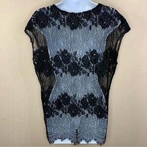 Black Lace Short Sleeve Blouse Stretch Small Goth Glam Modern Movement