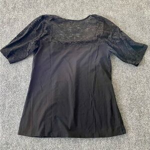 Elegant black top with lace sleeves. Perfect for any occasion.