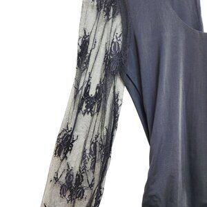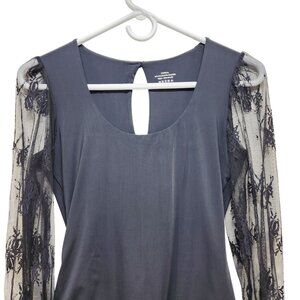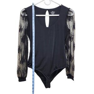 Black Lace Sleeve Bodysuit With Mesh Details & Snap Closure Size S