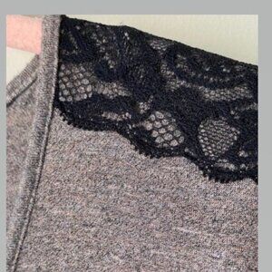 Black Lace Sleeve High Low Tan Tunic, size XL.