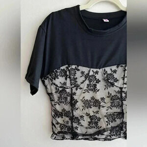 Black Lace Sweetheart Ruched Top, Women’s Floral Lace Overlay Blouse, Size Small