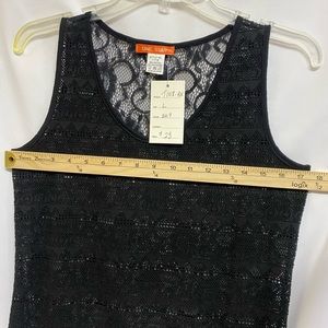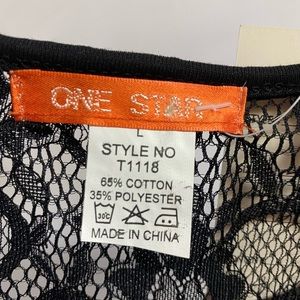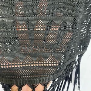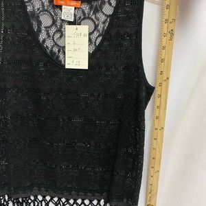Black Lace Top Size Large with Fringe See Through Not Lined By One Star. NWT 65% Cotton 35% polyester