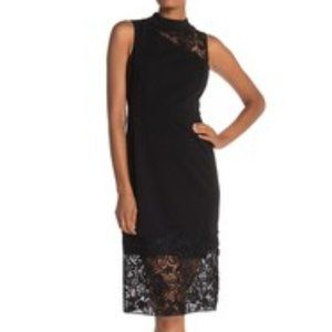 Black Lace Trim Mock Neck Midi Sheath Dress NWT Sm