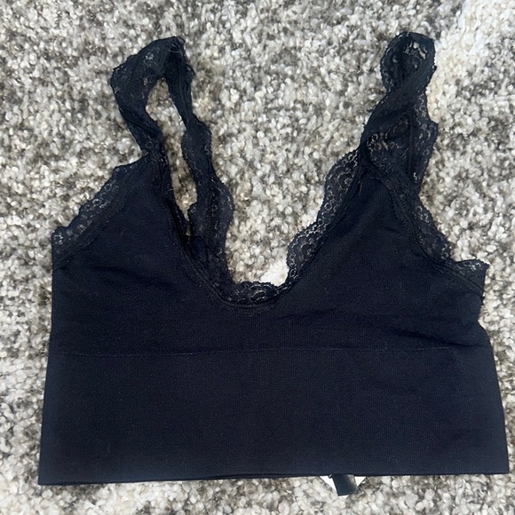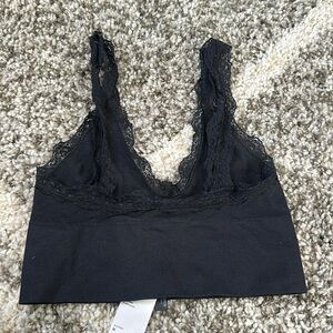 Black Lace Trim Seamless Bralette Crop Top Comfort Everyday Lounge Size M