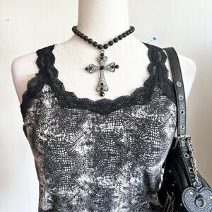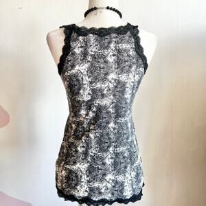 Black Lace Trim Tank Top, Y2K Grunge Goth Edgy Alt Vintage Small