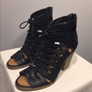 These cutout booties are finished with a zipper closure on the back and a stacked heel. Made by Rampage and only worn once ! Excellent condition !