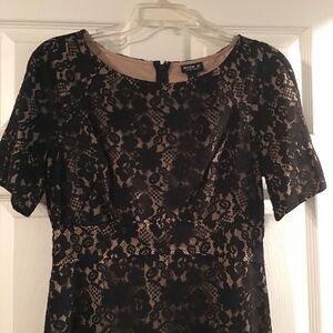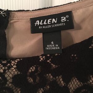 Black lace dress from Allen B. Tan/skin color underlay with lace over.