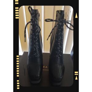 Step out in style with these chic black lace-up ankle boots. Perfect for any occasion, these boots offer both comfort and elegance.they are size 10 just never worn them that much open to offers
