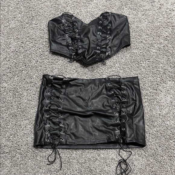 Stylish black skirt with lace-up detailing. Perfect for a bold, edgy look.