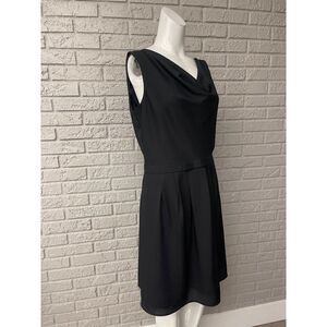 Black Lands Black Twill Drape Front Sleeveless Pleated Front Dress Size 10