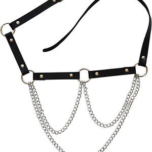 NWT Black Layered Punk Top & Waist Chain Belt Leather Body Jewelry Bondage BDSM NWT