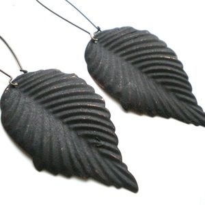 I've attached these beautiful hand painted black leaves from antique brass kidney ear wires.