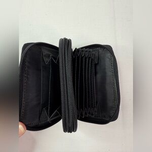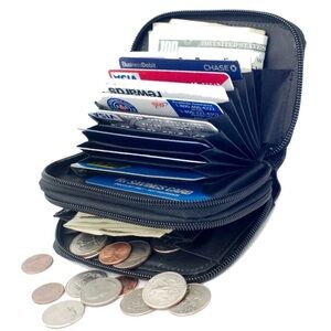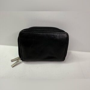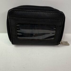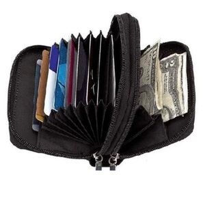 Black Leather Accordion Ladies Wallet ID Credit Card Case Holder Zip Around