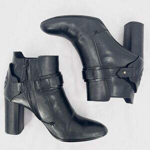 Step out in style with these sleek black leather ankle boots. Perfect for any occasion, they offer both comfort and elegance.