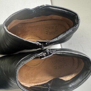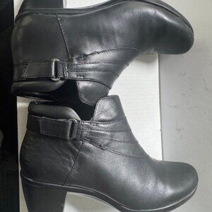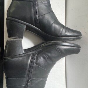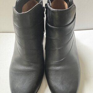 Black Leather Ankle Boots with Buckle Detail and Zipper Closure - size 9