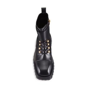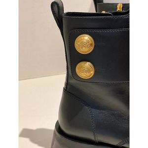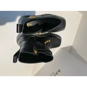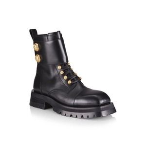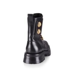 Step out in style with these chic black leather ankle boots. Featuring elegant gold accents, they offer both comfort and sophistication. Perfect for any occasion.