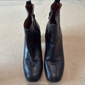 Black Leather Ankle Boots with Studded Detail