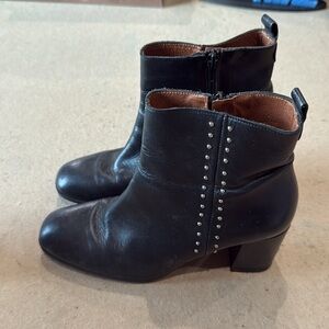 Step out in style with these chic black leather ankle boots. Featuring a sleek design and studded detail, these boots are perfect for any occasion. Elevate your wardrobe with this versatile footwear choice.