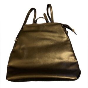 This black leather backpack bag is so stylish and functional. It is in excellent condition to give you many years of use. Perfect for those quick trips to the coffee shop with a book or to look to cool for school.