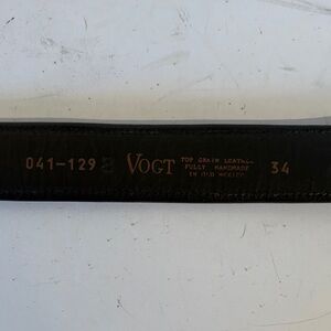Stylish black leather belt featuring an ornate sterling silver buckle. Two-tone (silver and gold) star motif buckle set. Both the belt and the buckle are from the Vogt company. Perfect for adding a touch of elegance to any outfit. Belt 40”. Belt plus Buckle set 42”.