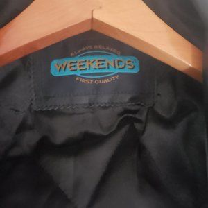 Very stylish, Black leather jacket, quilted interior, excellent condition, barely worn but a couple times. Brand is Weekends