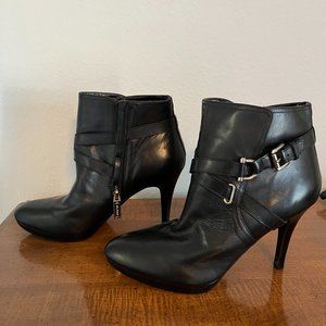 Worn only a few times. Black leather booties, Tommy Hilfiger, 10M.