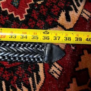 Black Leather Braided Woven Wide Waist Belt Sz S/M