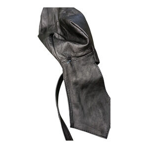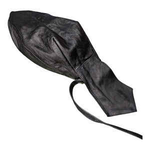 Get ready to ride in style with these awesome black leather biker doo rag! Perfect for keeping your hair in place and adding a touch of edgy cool to your look. This head wrap is very lightly used and ready for your next adventure on the open road.