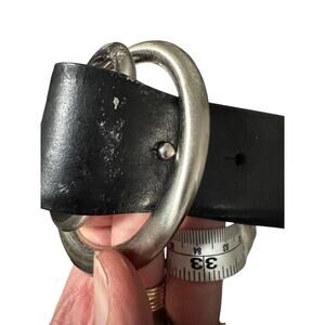 Black Leather Double Ring Circle Buckle Belt Size S/M 34" Max Length, 1.5" Wide